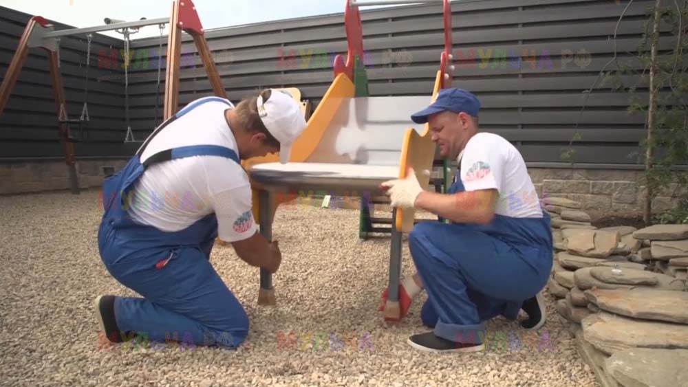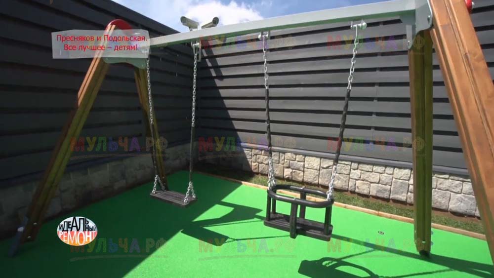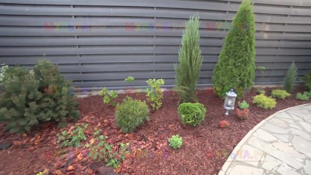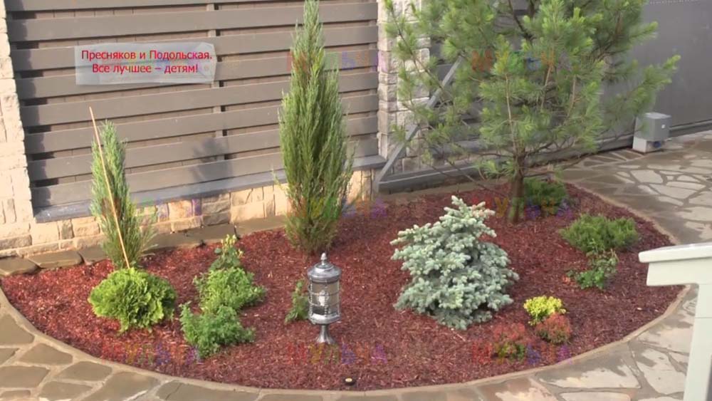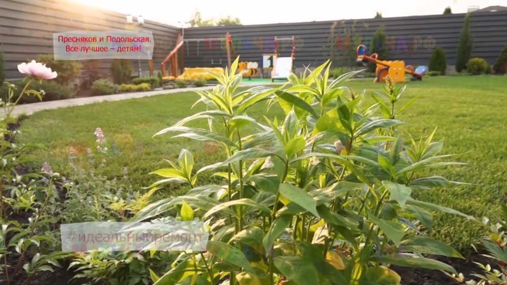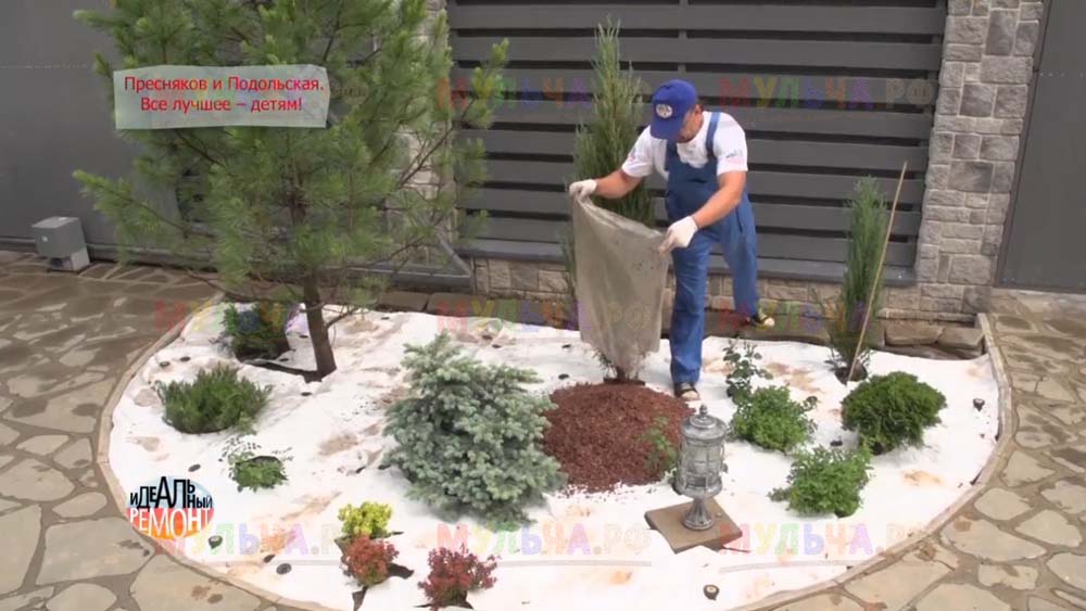 На участке появилась детская площадка с качелями и песочницей, красивые клумбы и множество хвойных деревьев. Чтобы уход за клумбами на доставлял хозяевам слишком много хлопот, дизайнеры укрыли их поверхность геотканью, а сверху насыпали прекрасную натуральную мульчу – кору лиственницы. Такое укрытие идеально защищает от сорняков, а, значит, избавляет от прополок. Кора выглядит замечательно и прекрасно пахнет, она сама по себе может считаться украшением сада. И, конечно, клумбы, устроенные таким образом, очень практичны, ведь они не отнимают у хозяев времени, которое можно посвятить более важным делам. Владимир Пресняков и Наталья Подольская оценили это!