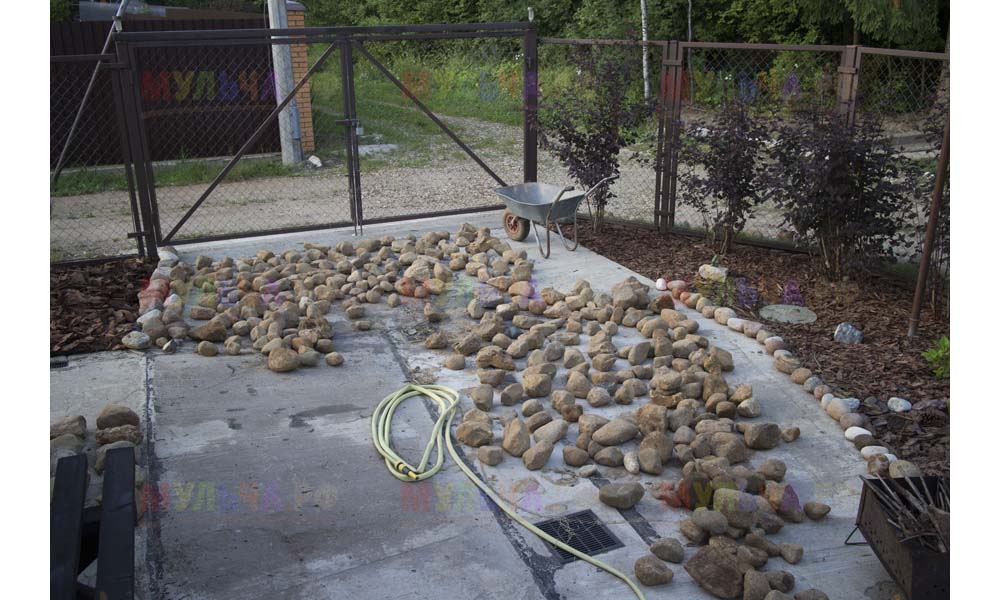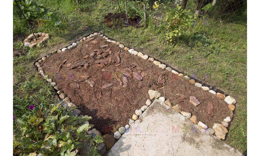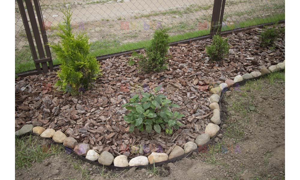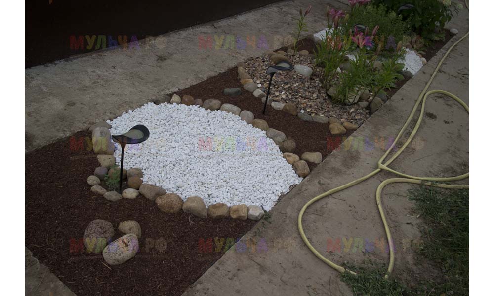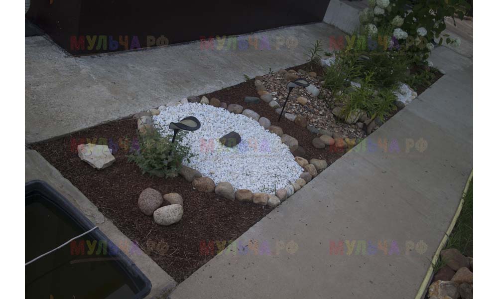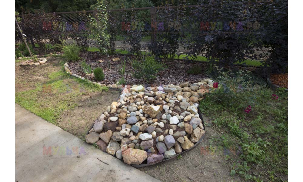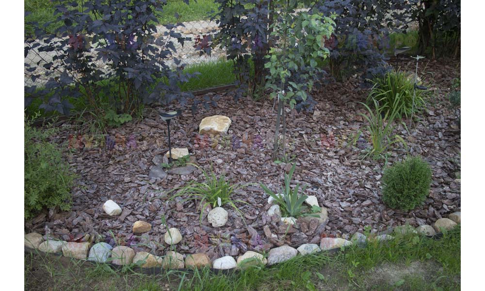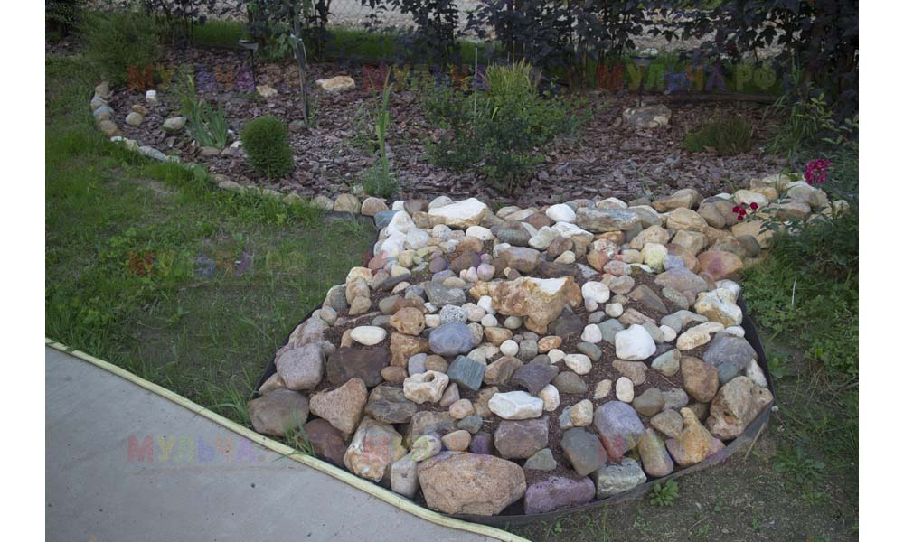 Кора лиственницы — очень красивый мульчирующий материал. Но нет предела совершенству! Комбинируйте кору лиственницы с другими натуральными материалами, например, камнями, и вы получите потрясающий результат.