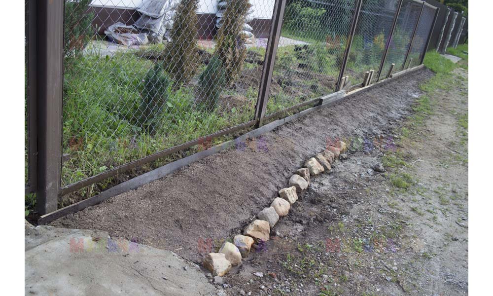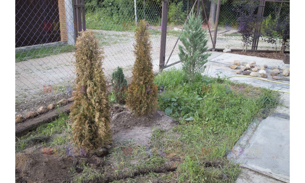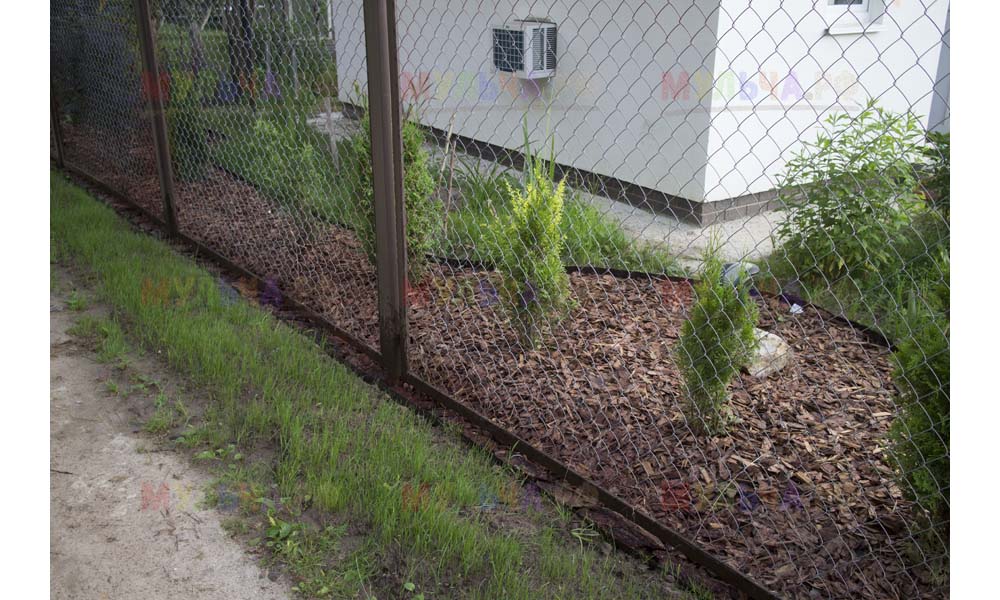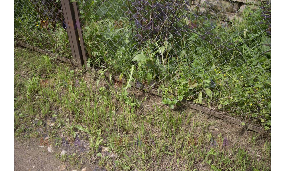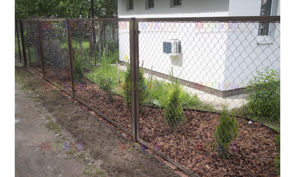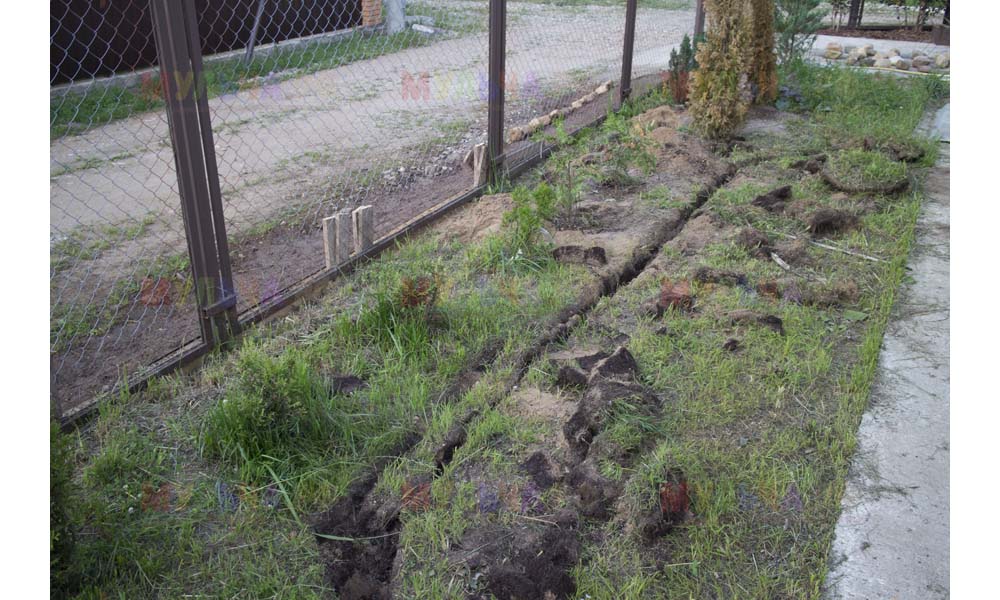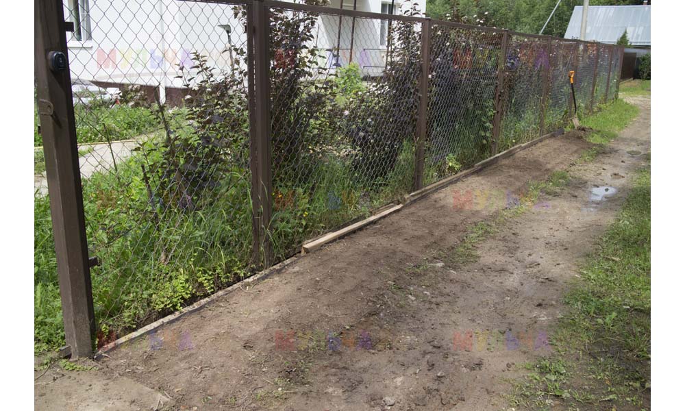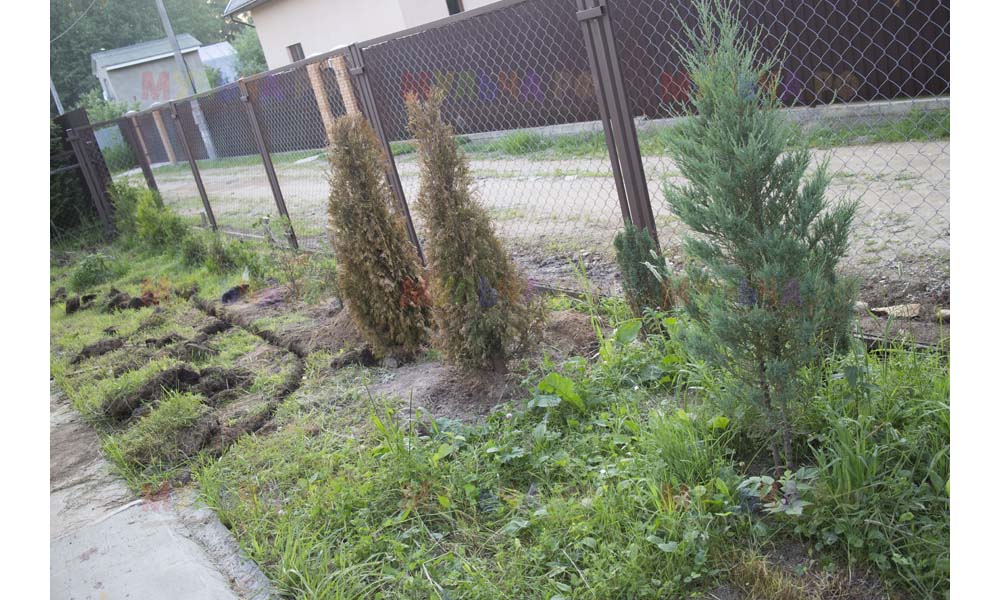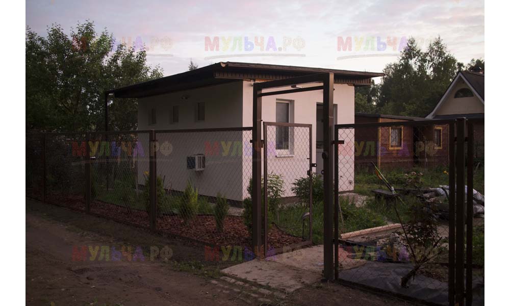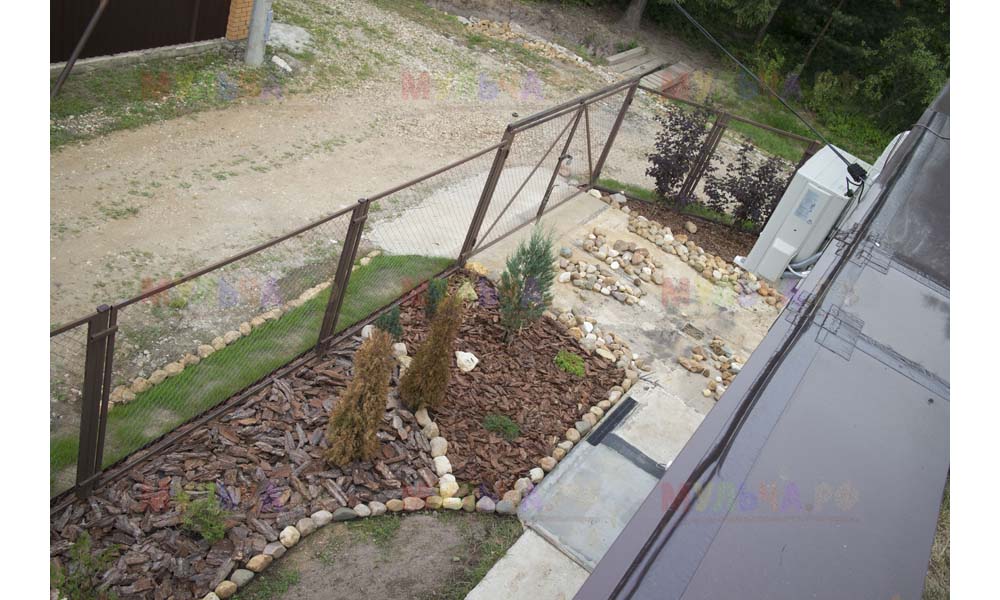 Даже сложные участки, расположенные вдоль забора, можно эффективно защитить от сорных растений. Бордюрная лента, черный геотекстиль и в качестве финального слоя — кора лиственницы. И территория буквально преображается!